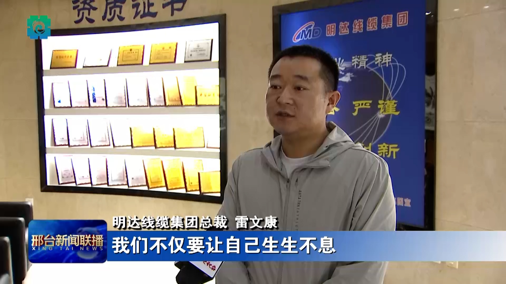 邢臺新聞聯(lián)播:【促進民營經(jīng)濟高質(zhì)量發(fā)展】 明達線纜:創(chuàng)新驅(qū)動發(fā)展 實現(xiàn)行業(yè)領跑